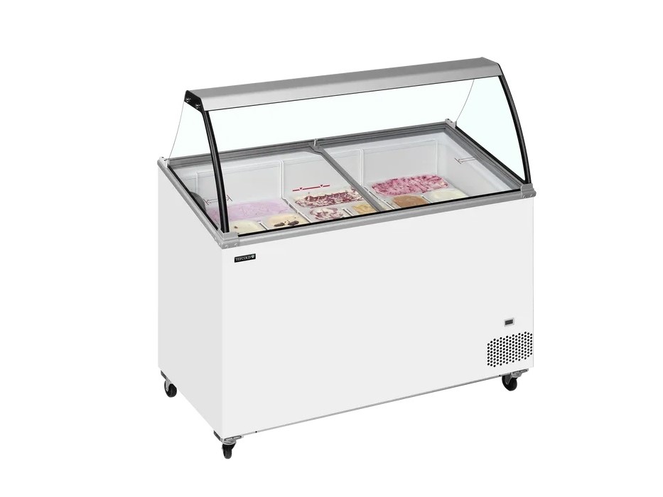Эта модель представляет собой морозильную камеру для порционной продажи мороженого. Является идеальным вариантом, если вы планируете ввести в свой бизнес порционную продажу мороженого и ограничены бюджетом. Эта модель представляет собой наклонную морозильную камеру с наклонными сдвигающимися стеклянными крышками вместо горизонтальных. Более низкая передняя панель этой морозильной камеры обеспечивает лучший обзор содержимого, благодаря чему она представляет собой еще более удачный вариант витрины для порционной продажи мороженого.